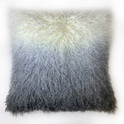 Authentic Luxurious Mongolian Fur Pillow Cover 20" Sq. 2 pcs set Ombre Pewter - Vanilla