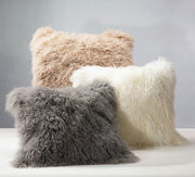 Luxe Mongolian Lamb Fur Pillow Cover 20"x20" - 100%Natural Wool, Plush, Organic, High-End Design, Available in 3 Colors(Ivory, Sand, and Light grey)