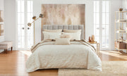 Elevate your bedroom decor with the sophisticated Imani Lurex Jacquard Duvet Cover Set, expertly designed and developed in Toronto. This set features a refined pearlized ivory shade interwoven with champagne lurex threads, offering a rich, luxurious texture and a subtle metallic sheen. The elegant design, inspired by the tranquil landscapes of northern Toronto, provides a serene and stylish atmosphere to any bedroom setting. The duvet cover and reversible shams are adorned with 1/2" flange detailing, enhancing the ensemble with a polished, tailored look. Made from a premium blend of materials, the Imani set delivers both comfort and elegance, perfect for those seeking a luxurious sleeping experience.