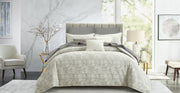 Give your bedroom a contemporary, luxe upgrade with the Textured Hexagon Lurex Jacquard Duvet Cover Set, designed and crafted in Toronto. This duvet cover set features an intricate geometric hexagonal pattern, woven with metallic Lurex threads that create a subtle, sophisticated sheen. The pattern's modern elegance, combined with the neutral, calming color palette, enhances the overall look of any bedroom, from minimalist to chic. Both the duvet cover and reversible pillow shams feature 1/2" flange detailing, adding a clean and tailored finish to your bedding ensemble. The Textured Hexagon duvet set is lightweight and breathable, making it suitable for year-round comfort.